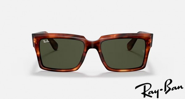 Ray Ban Inverness Polished Striped Havana Frame Green Lenses Sunglasses