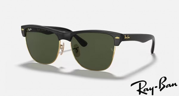 Ray Ban Clubmaster Oversized Matte Black On Gold Frame Green Lenses Sunglasses