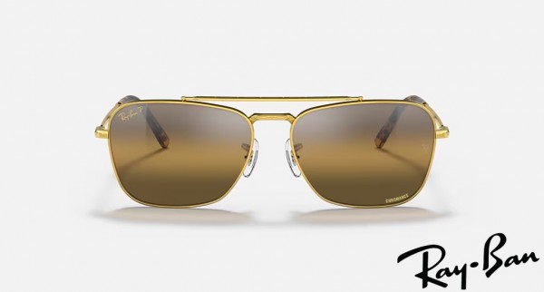 Ray Ban New Caravan Polished Gold Frame Brown Chromance Lenses Sunglasses