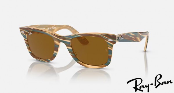Ray Ban Original Wayfarer Change Polished Photo Striped Brown Frame Brown Lenses Sunglasses