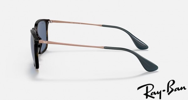 Ray Ban Chris Polished Havana Frame Blue Lenses Sunglasses