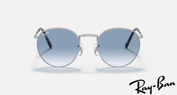 Ray Ban New Round Polished Silver Frame Blue Gradient Lenses Sunglasses