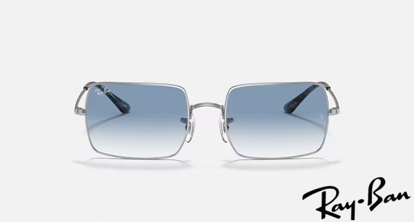 Ray Ban Rectangle 1969 Polished Silver Frame Blue Gradient Lenses Sunglasses