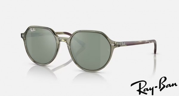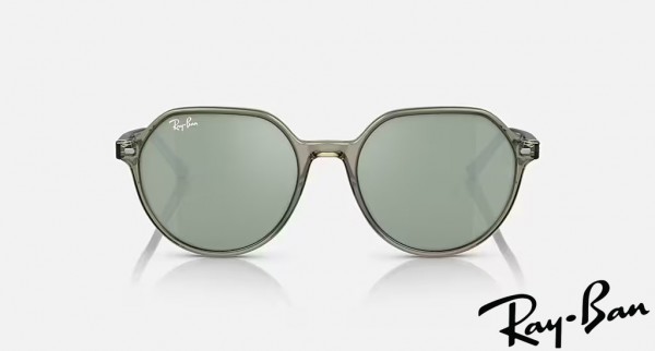 Ray Ban Thalia Polished Transparent Green Frame Silver Mirror Lenses Sunglasses