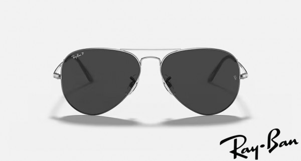 Ray Ban Aviator Metal II Polished Gunmetal Frame Black Lenses Sunglasses