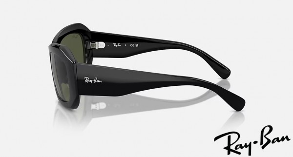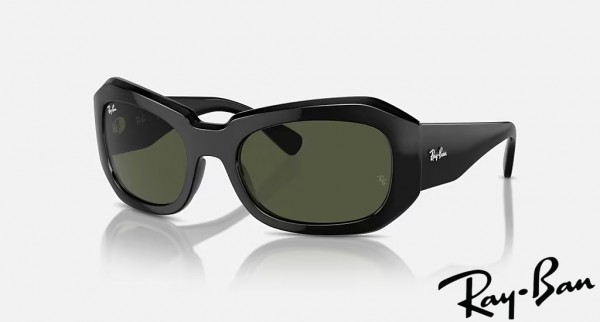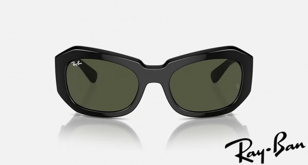 Ray Ban Beate Polished Black Frame Green Lenses Sunglasses