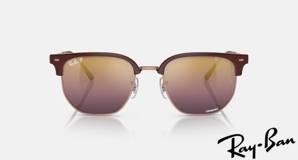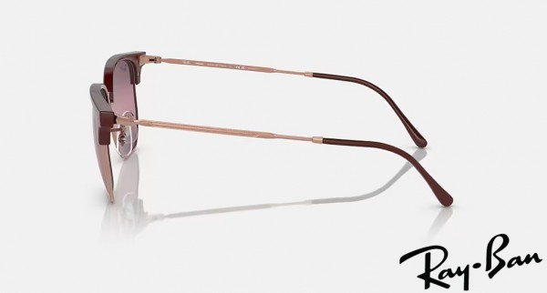 Ray Ban New Clubmaster Polished Bordeaux On Rose Gold Frame Gold/Red Lenses Sunglasses