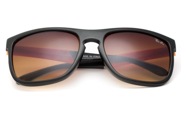* Brand name at temples and upper right lens.